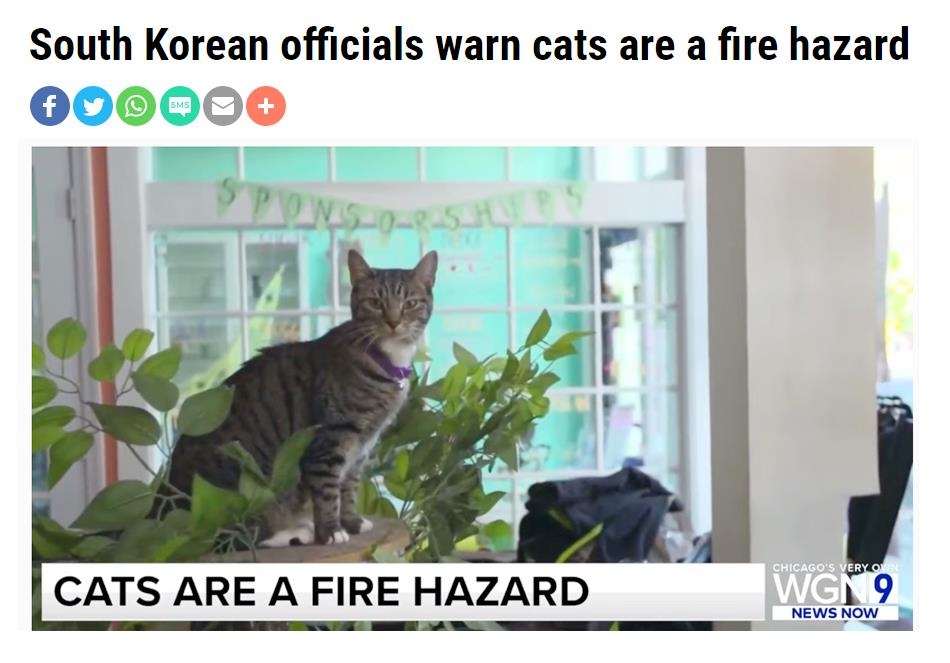 이와 관련 WGN방송은 "당신의 고양이만 사이코패스인 것이 아니라 다른 고양이들도 방화범이 될 수 있다는 사실이 한국 소방당국에 의해 입증됐다"고 운을 뗐다.