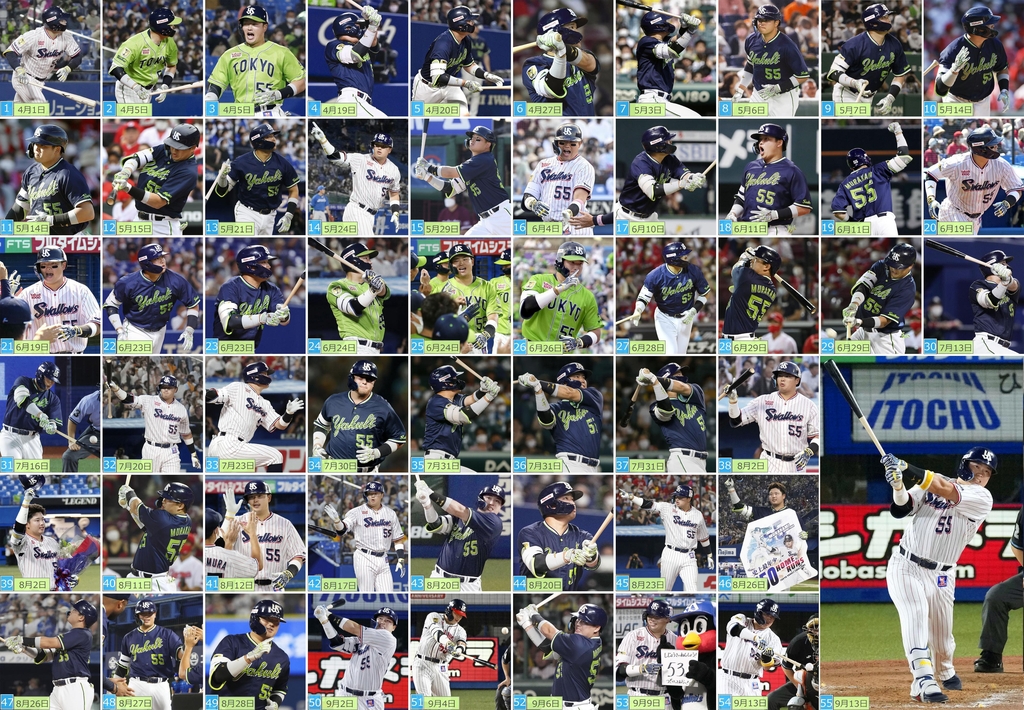 남은 15경기에서 홈런 6개 추가하면 발렌틴의 60홈런 넘어 일본 최다 기록