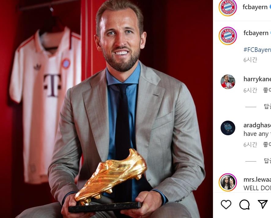| ▲ 유러피언 골든슈를 수상한 해리 케인 [바이에른 뮌헨 인스타그램 캡처. 재판매 및 DB금지] |
