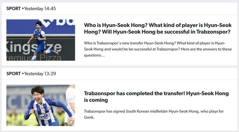 ▲ 홍현석의 트라브존스포르 이적을 보도한 튀르키예 매체 [아슬린다 홈페이지 캡처. 재판매 및 DB 금지] |