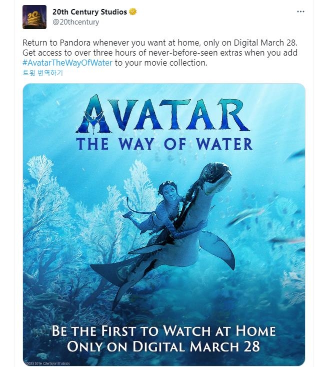 | ▲ '아바타2' 디지털 버전 출시를 알리는 트위터 [20세기 스튜디오 트위터 캡처. 재판매 및 DB 금지] |