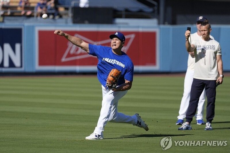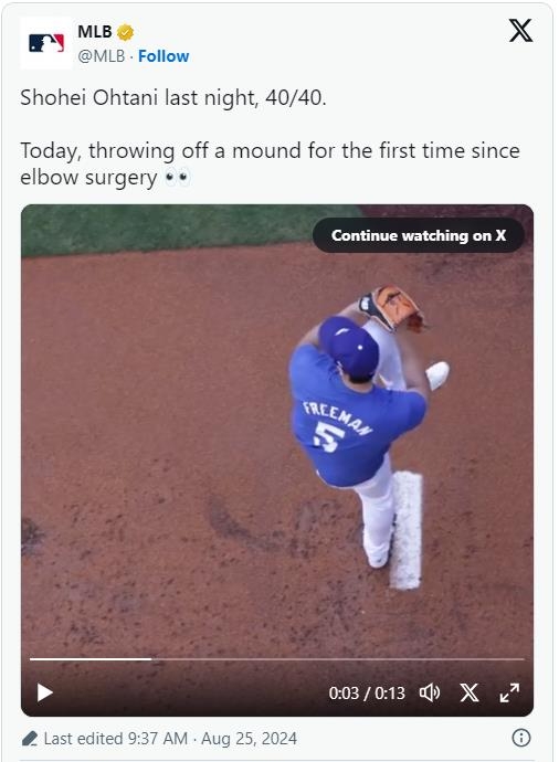 | ▲ 수술 후 불펜에서 처음으로 공을 던지는 오타니 [MLB 엑스 계정 캡처. 재판매 및 DB 금지] |