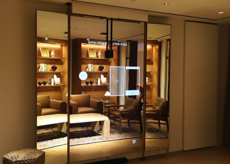 4개 방 중에는 '디지털 룸'도 있다. 카메라가 달린 전신거울을 모니터 삼아 매장에 나가 있는 직원과 화상 통화를 할 수 있다. 매장에 있는 상품들을 이곳에 앉아 편안히 쇼핑하는 것이다. 증강현실(AR) 기술도 구현할 수 있어 이 거울을 통해 고객에게 맞는 다양한 스타일링을 제안하는 것도 가능하다.