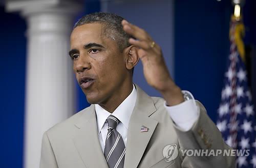 | ▲ 회갈색 양복으로 2014년 논란이 됐던 오바마 전 대통령 [AP 연합뉴스 자료사진. 재판매 및 DB 금지] |