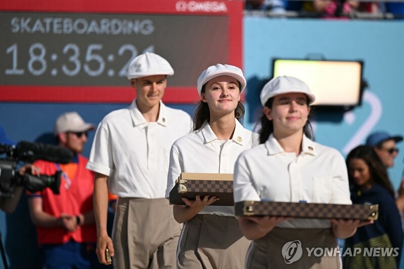 ▲ 루이뷔통 로고 새겨진 파리 올림픽 메달 받침대 [AFP=연합뉴스 자료사진] |