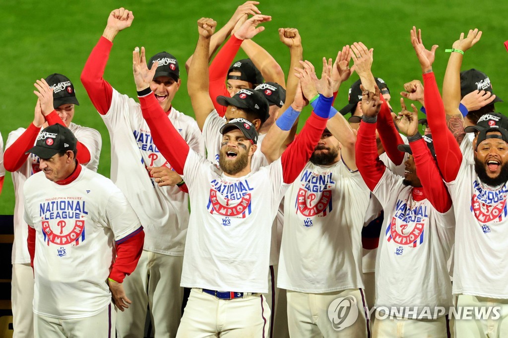 | ▲ 샌디에이고 꺾고 월드시리즈 진출 확정한 필라델피아 필리스 선수단 [AFP/게티이미지 연합뉴스 자료사진] |