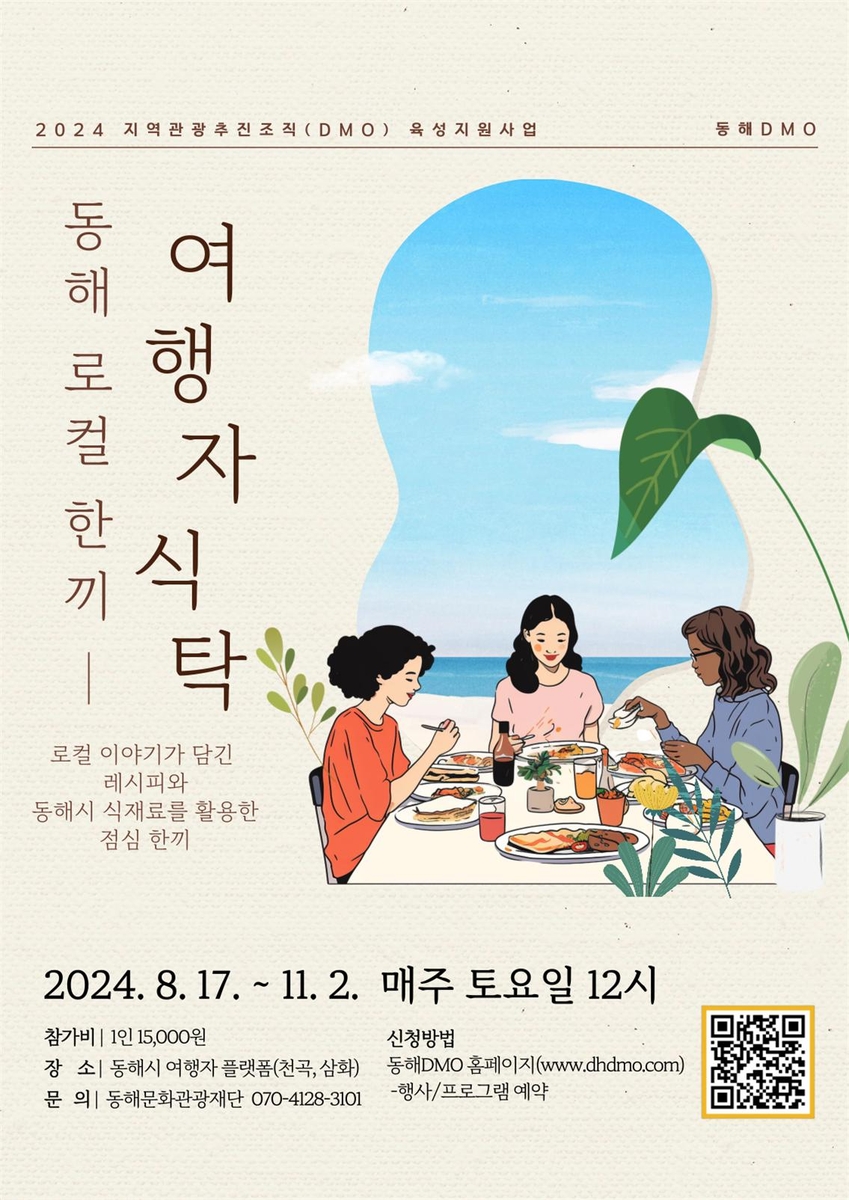 강원 동해문화관광재단(이하 재단)은 11월 2일까지 매주 토요일 정오에 여행자와 지역주민이 함께하는 '동해 로컬 한 끼 여행자 식탁'을 진행한다고 19일 밝혔다.