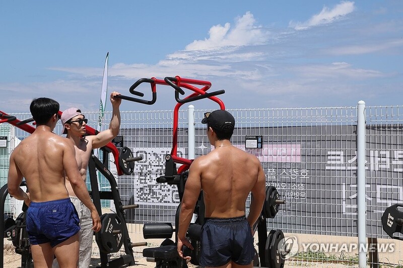 | ▲ '바닷바람 맞으며 운동을'…강릉 강문해변 머슬비치 (강릉=연합뉴스) 류호준 기자 = 16일 강원 강릉시 강문해변 머슬비치에서 피서객들이 운동하고 있다. 2024.8.16 ryu@yna.co.kr |