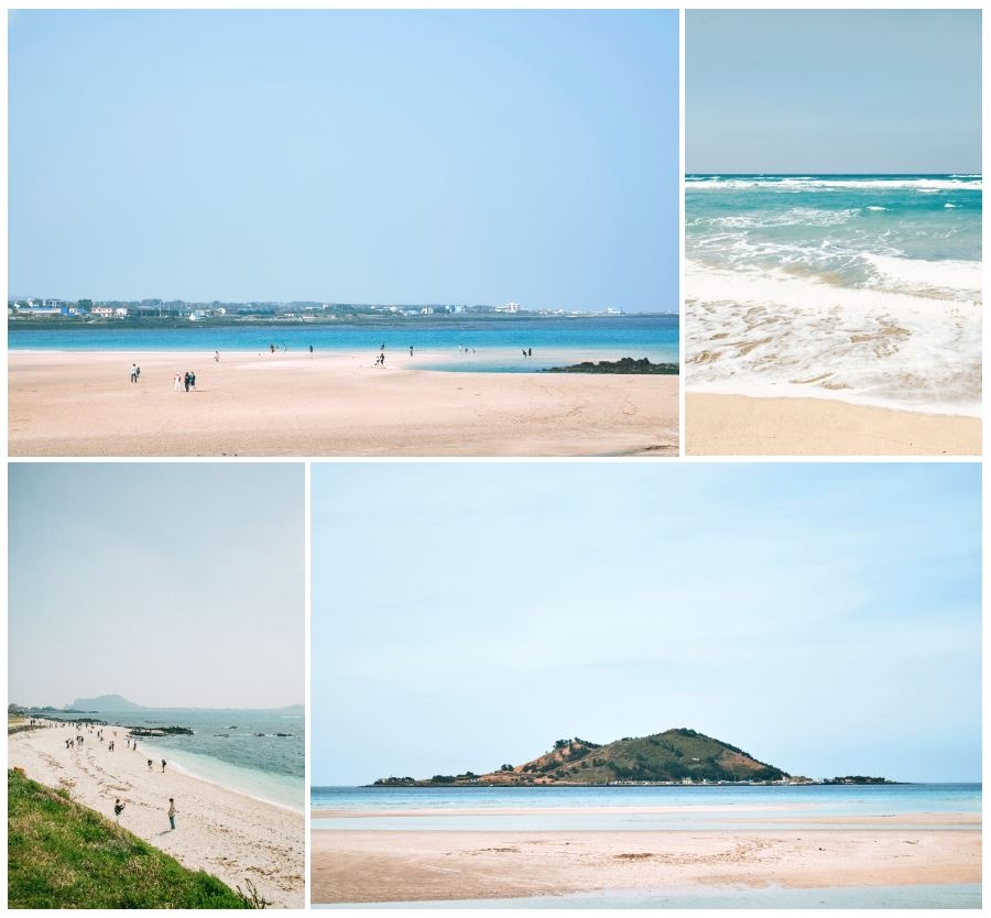 성산일출봉에서 1코스 종점 이후에도 이어지는 모래사장을 따라가면 섭지코지까지 이르는 약 5km의 긴 해안 모랫길을 걸을 수 있다.