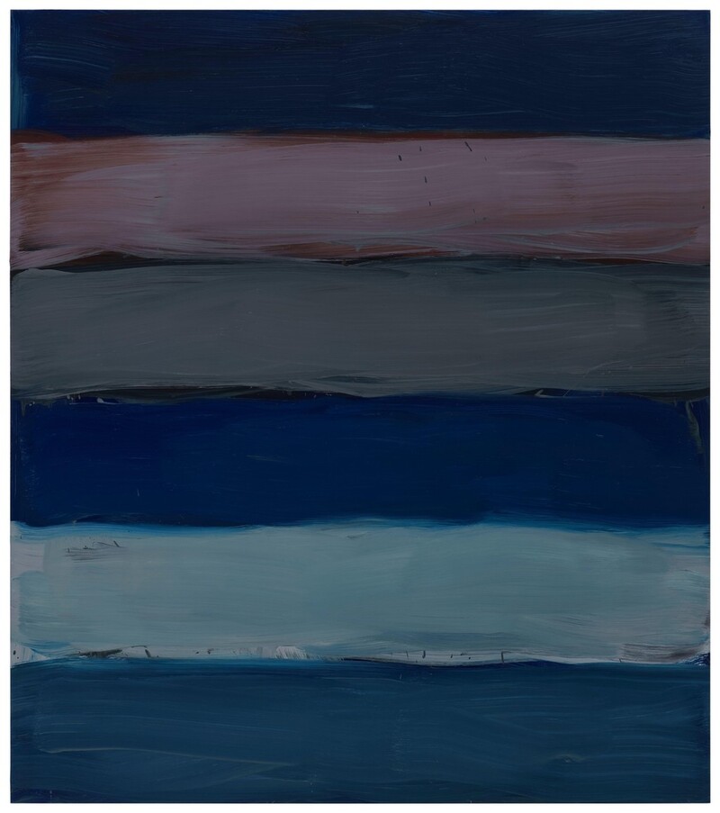 또다른 연작 '랜드라인'(Landline)은 풀이 무성하게 자란 대지와 수평선의 모습을 담은 사진에서 출발해 수평의 굵은 색선을 여러 차례 반복해 그린 작품이다.