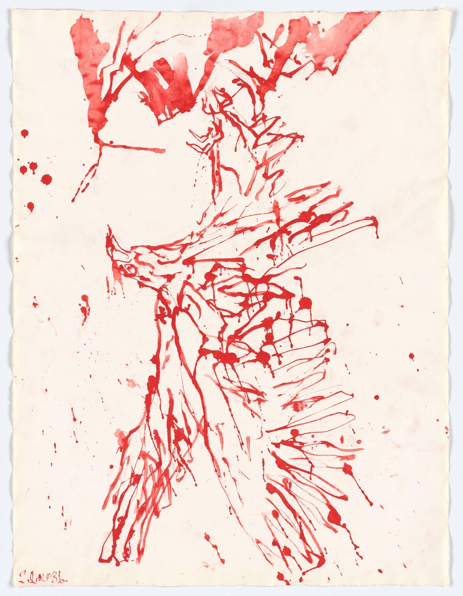 전시에는 붓 대신 팔레트 나이프(스패출러)를 이용해 중력을 거슬러 비행하는 독수리를 빠르게 그린 그림 4점과 펜과 잉크를 사용한 드로잉 8점이 나왔다. 유화 작품의 색은 파블로 피카소의 초현실주의 회화와 작가의 어린 시절 우상이었던 윌럼 데 쿠닝 등의 작품을 참조한 것이다.
