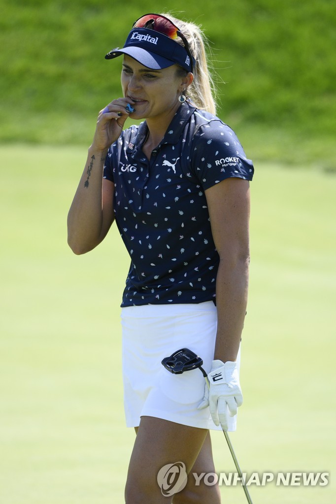 | ▲ 17번 홀 퍼트 실수 이후 아쉬워하는 톰프슨 [AP=연합뉴스] |