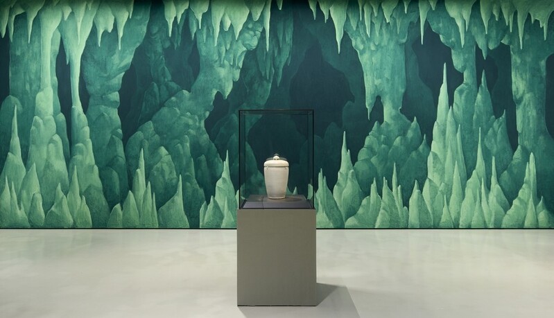 '동굴' 그림 앞에는 조선 시대 '백자 태호'가 놓였고 '공룡' 연작은 청동운룡문 운판에 재현된 용(龍)의 이미지와 만난다. '주름'과 '곤충' 연작은 겸재 정선의 '노백도'와 함께 전시되는 등 고미술품과 파티의 그림이 전시장에서 한데 어우러진다.