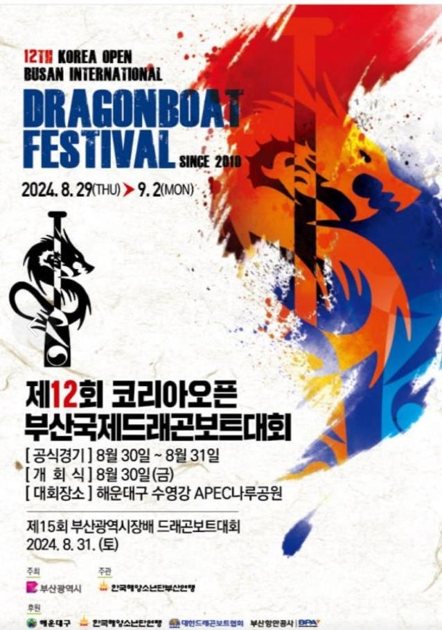 (부산=연합뉴스) 조정호 기자 = 제12회 코리아오픈 부산국제드래곤보트대회와 제15회 부산광역시장배 드래곤보트대회가 29일부터 9월 2일까지 수영강 APEC 나루공원 일원에서 열린다. 드래곤보트는 12∼20명의 팀원이 고수의 북소리에 맞춰 노를 저으며 수면 위를 질주하는 수상레저 스포츠다.