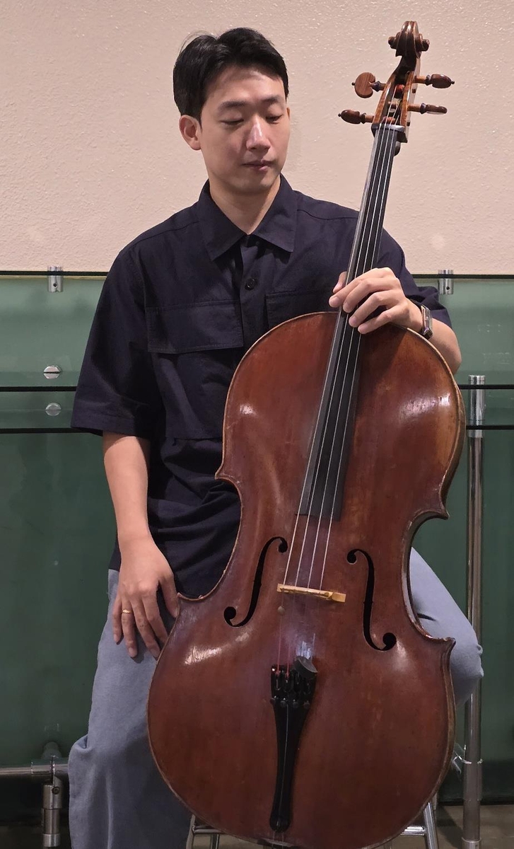 | ▲ 삼성문화재단이 후원한 마테오 고프릴레르 첼로를 들고 기념사진 찍는 이원해 (서울=연합뉴스) 임순현 기자 = 첼리스트 이원해가 27일 예술의전당 사무실에서 자신의 첼로와 함께 기념사진을 찍고 있다. 2024.08.27 hyun@yna.co.kr |