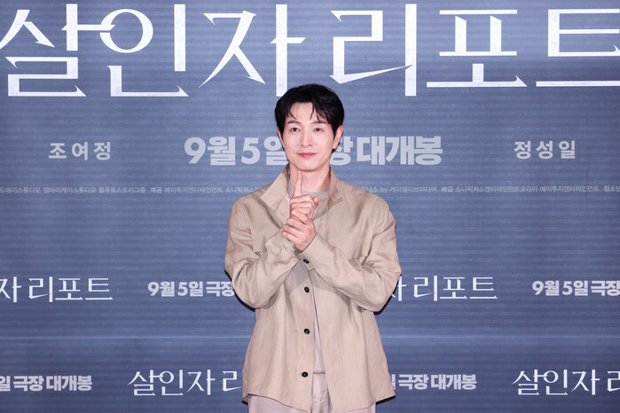 South Korean actor Jung Sung-il, who stars in the new movie "Murder Report," poses for a photo during a publicity event in Seoul on Aug. 28, 2025, to promote the movie, set to hit local screens in South Korea on Sept. 5. (Yonhap)