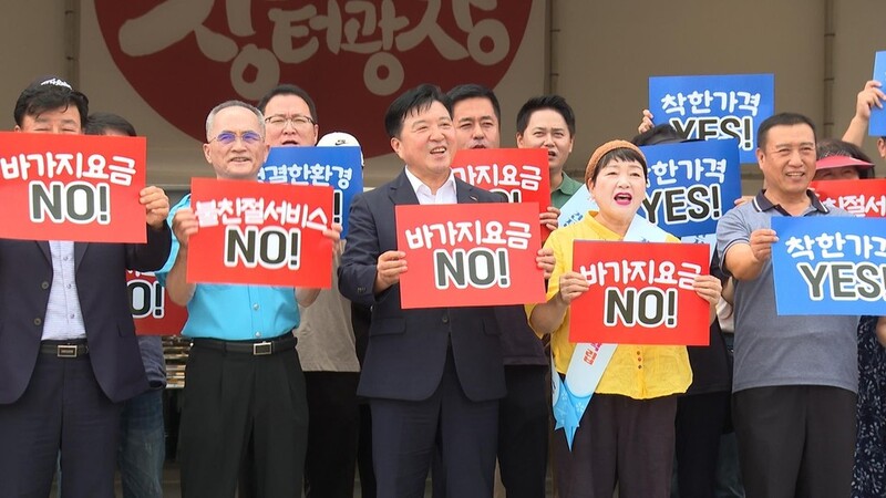 (예산=연합뉴스) 김소연 기자 = 충남 예산군은 예산맥주 페스티벌 개막을 앞두고 바가지요금을 근절하기 위해 예산시장 주변 상인 등과 '환영해유' 캠페인을 했다고 27일 밝혔다.