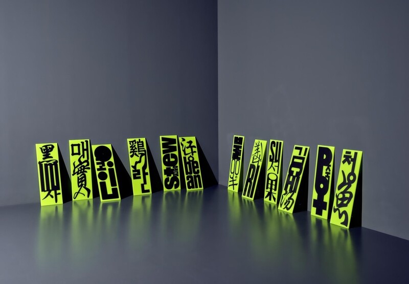| ▲ 유현선 씨의 'ME뉴板'(2022) 소리를 표현한 글자와 의미를 표현한 글자를 교차해 음식 이름을 표현한 작품 [국립한글박물관 제공. 재판매 및 DB 금지] |