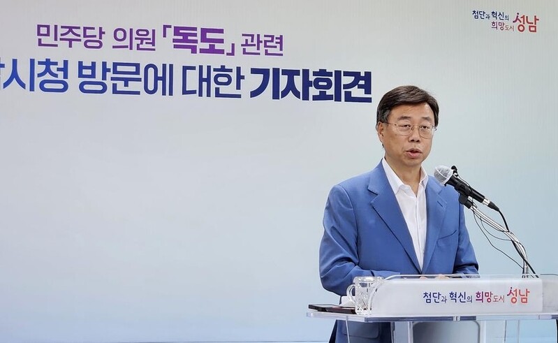 | ▲ 기자회견 하는 신상진 성남시장 [촬영 이우성] |