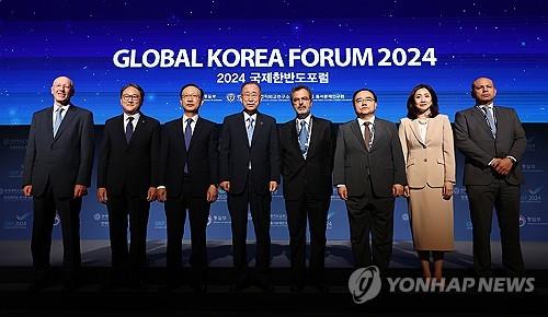 | ▲ Participants in the Global Korea Forum, a global forum hosted by the unification ministry and designed to garner international support for South Korea's bid for peaceful unification, pose for a photo before the forum on Sept. 3, 2024. (Yonhap) |