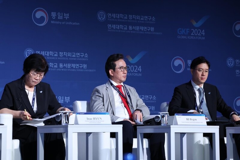 | ▲ This photo, provided by South Korea's unification ministry on Sept. 3, 2024, shows Ri Il-gyu (C), a former counselor of political affairs at the North Korean Embassy in Cuba, participating in the Global Korea Forum in Seoul. (PHOTO NOT FOR SALE) (Yonhap) |