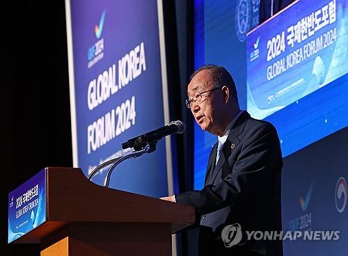 | ▲ Former U.N. Secretary-General Ban Ki-moon speaks during the Global Korea Forum (GKF), an inaugural event aimed at garnering international support for the unification of the two Koreas, held in Seoul on Sept. 3, 2024. (Yonhap) |