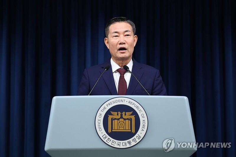 | ▲ = National Security Adviser Shin Won-sik announces the National Cybersecurity Basic Plan during a briefing at the presidential office in Seoul on Sept. 1, 2024. (Yonhap) |