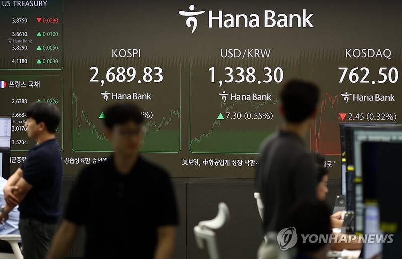 | ▲ This photo shows a dealing room at Hana Bank in central Seoul on Aug. 27, 2024. (Yonhap) |