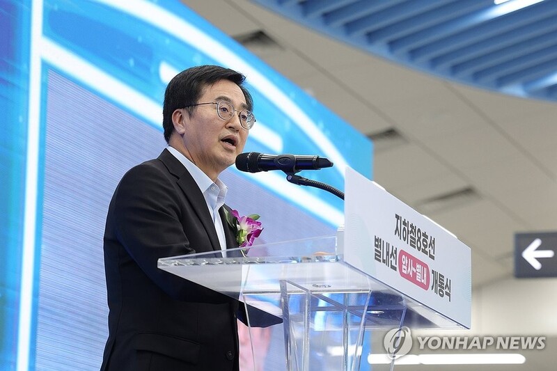 | ▲ 김동연 경기도지사 (남양주=연합뉴스) 임병식 기자 = 김동연 경기도지사가 지난 9일 남양주시 별내역에서 열린 지하철 8호선 연장 별내선 개통식에서 축사하고 있다. 2024.8.9 [연합뉴스 자료사진. 재판매 및 DB 금지] |