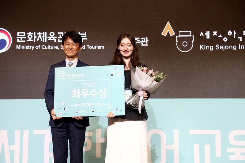 문화체육관광부와 세종학당재단이 신라호텔에서 개최한 '2024 세계한국어교육자대회' 참석차 방한한 그는 대회 첫날인 지난 6일 우수교원 공모전 시상식에서 최우수 교원으로 선정돼 문체부 장관상을 받았다.