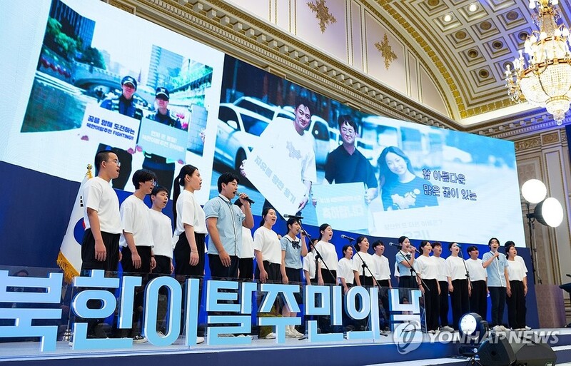 | ▲ This image, provided by the presidential office, shows a choir comprising students from South and North Korea singing to celebrate the day for North Korean defectors on July 14, 2024. (PHOTO NOT FOR SALE) (Yonhap) |