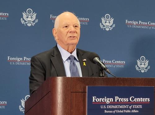 | ▲ Sen. Ben Cardin of Maryland, the chair of the Senate Foreign Relations Committee, speaks during a press briefing organized by the Foreign Press Centers in Chicago on Aug. 22, 2024. (Yonhap) |