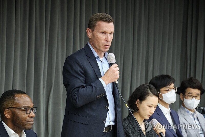 | ▲ Mathias Vaitl, CEO and president of Mercedes-Benz Korea, speaks to reporters on Aug. 14, 2024, after a meeting with residents of a South Korean apartment complex fire that began from a Mercedes-Benz electric vehicle earlier this month in Incheon, west of Seoul. (PHOTO NOT FOR SALE) (Yonhap) |
