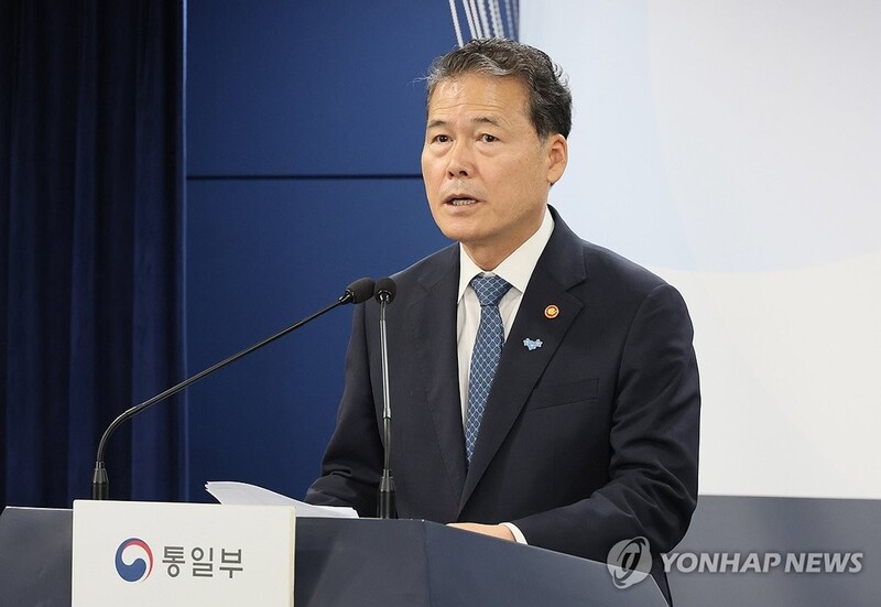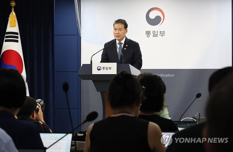 | ▲ Unification Minister Kim Yung-ho speaks at a press briefing in Seoul on Aug. 16, 2024, over President Yoon Suk Yeol's vision for unification. (Yonhap) |