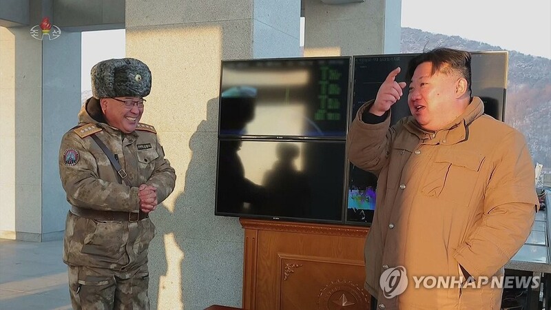 | ▲ This file image, captured from footage of North Korea's state-run Korean Central Television on Feb. 19, 2023, shows the North's leader Kim Jong-un (R) and Kim Jong-sik, vice director of the munitions industry department of the ruling Workers' Party. (For Use Only in the Republic of Korea. No Redistribution) (Yonhap) |