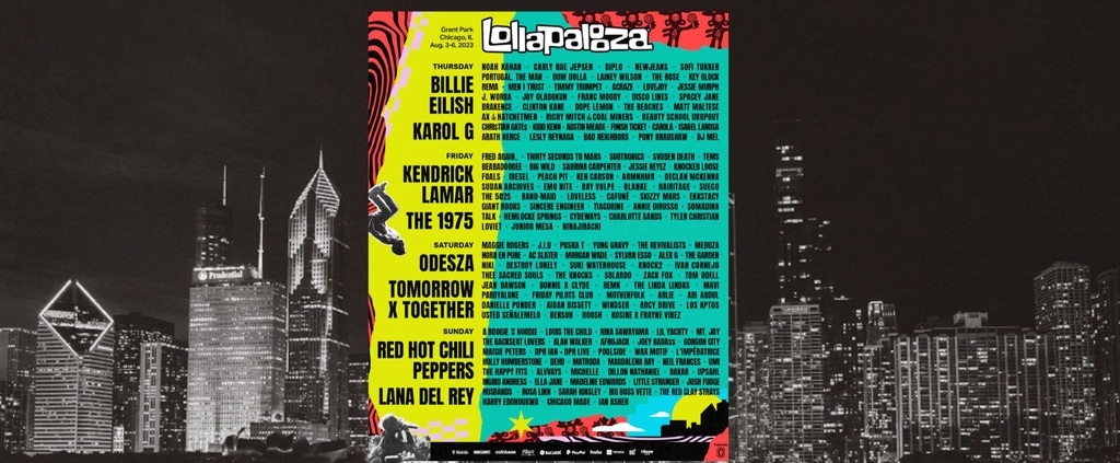 | ▲ 2023 시카고 롤라팔루자 라인업 [롤라팔루자 웹사이트 캡처. 재판매 및 DB 금지] |