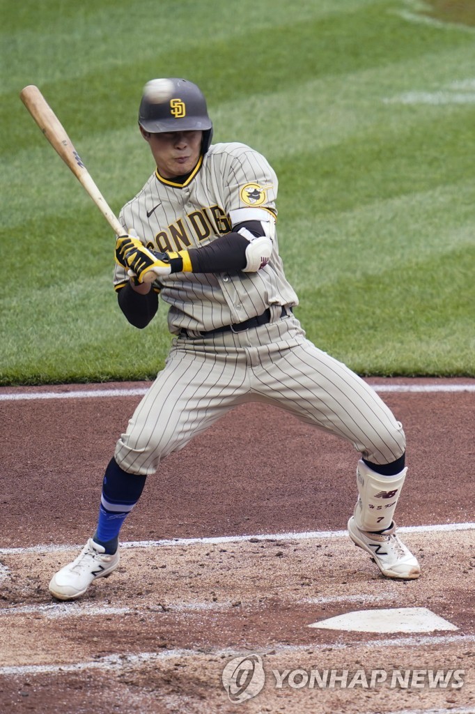 | ▲ 타구 피하는 김하성 (피츠버그 AP=연합뉴스) 샌디에이고 파드리스 한국인 내야수 김하성(오른쪽)이 16일(한국시간) 미국 펜실베이니아주 피츠버그 PNC파크에서 열린 피츠버그 파이리츠와의 방문 경기에서 몸쪽으로 날아오는 공을 피하고 있다. |