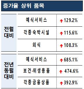특히 예식 서비스 관련 상담 건수가 전월 대비 129.2% 늘어 가장 높은 증가율을 보였다. 뒤를 이어 각종 숙박시설(115.6%), 외식(108.3%) 관련 상담 증가율이 높았다.