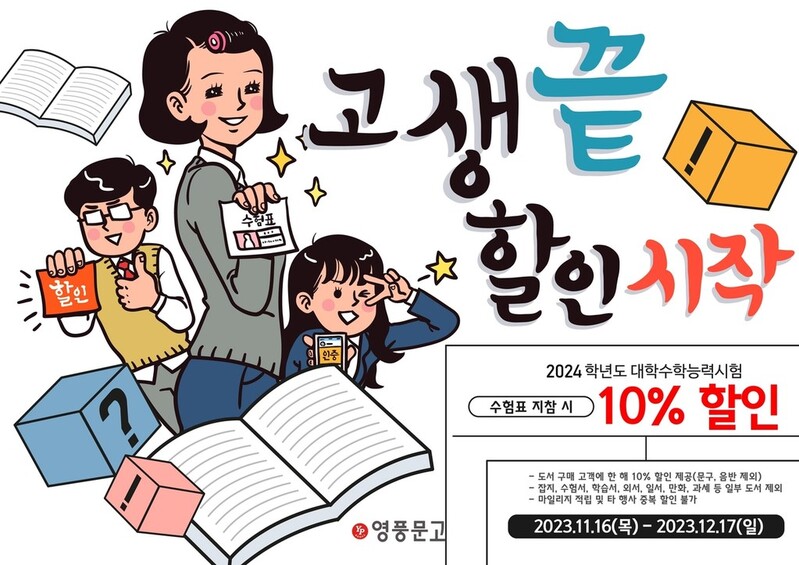 서점가도 수험생을 대상으로 할인행사에 나선다. 영풍문고는 16일부터 다음 달 17일까지 도서 구매 시 수험표를 제시하면 구매 금액의 10%를 할인해준다.