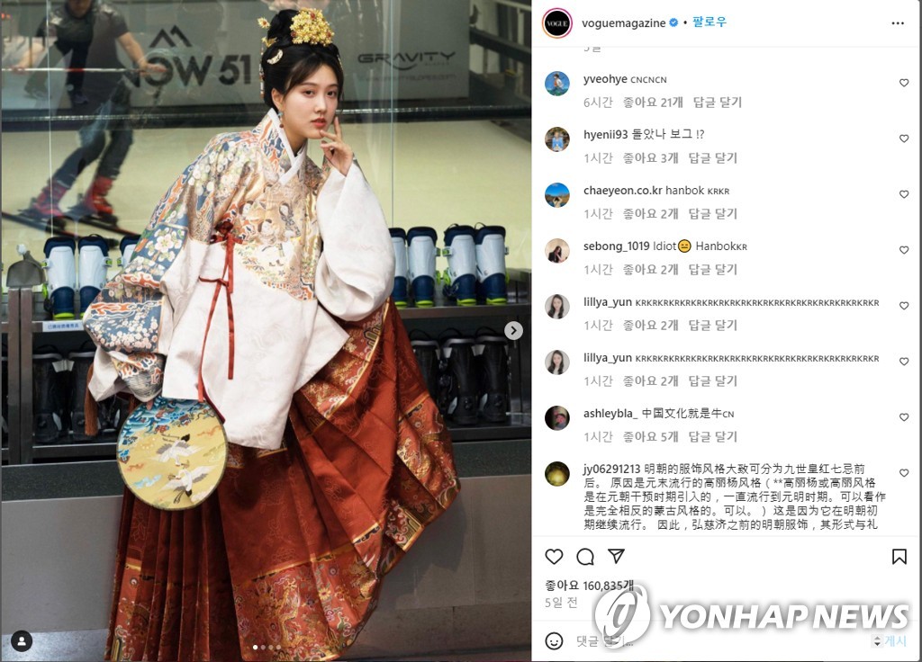 | ▲ 한복 기원 논란 [보그 인스타그램 계정 캡처] |