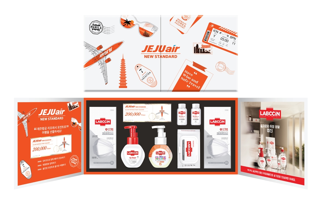 이번에 내놓은 '슬기로운 항공·위생생활세트'는 제주항공의 리프레시 포인트 20만 포인트 등록권과 위생 전문브랜드 '랩신'의 마스크, 손소독 티슈 등으로 구성됐다.