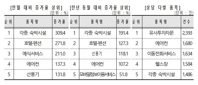 또 '호텔·펜션' 관련 상담은 1천439건으로 271.8% 늘었다.