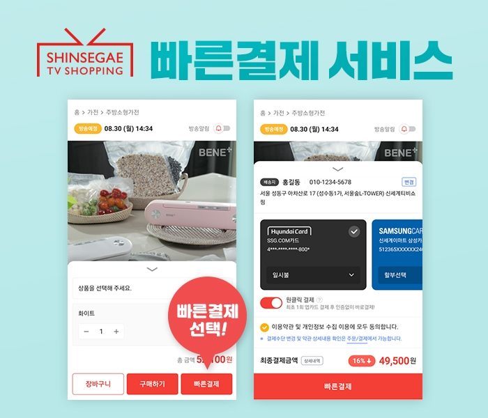 [게시판] 신세계TV쇼핑, '원클릭' 결제 서비스 도입▲ 신세계TV쇼핑은 15일 모바일 애플리케이션에서 클릭 한 번으로 결제할 수 있는 서비스를 도입했다. 결제시 신용카드사의 앱카드로 바로 연결돼 결제방식 선택과 비밀번호 입력 절차가 생략된다. (서울=연합뉴스)(끝)