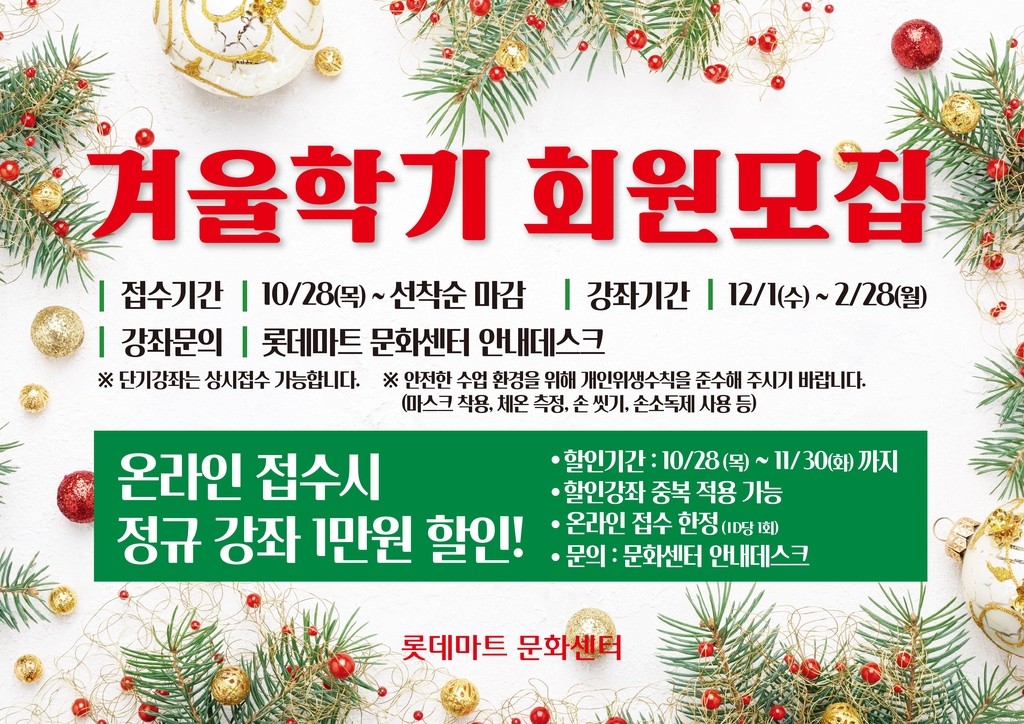 롯데마트도 28일부터 겨울학기 문화센터 회원을 모집한다.