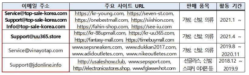 | ▲ 특정 이메일을 반복적으로 쓰는 사기의심 사이트 [한국소비자원 제공, 재판매 및 DB금지] |