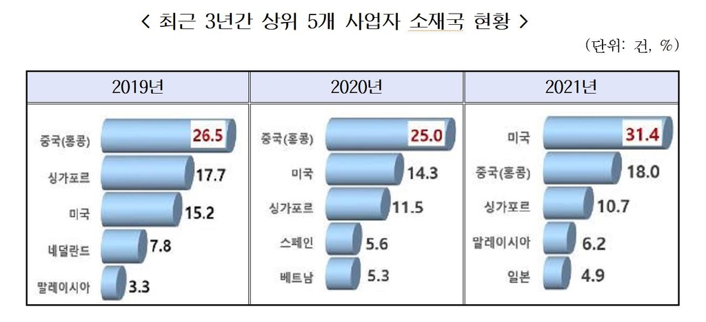 소비자 불만과 관련해 해외 사업자의 소재국이 확인된 3천783건을 분석한 결과 사업자 소재지가 미국(31.4%)인 경우가 가장 많았고 이어 중국(홍콩)(18.0%), 싱가포르(10.7%) 등 순이었다.