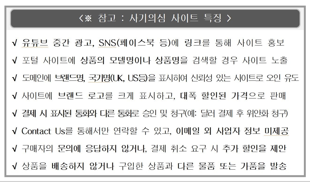 | ▲ 사기 의심 사이트 특징 [한국소비자원 제공. 재판매 및 DB 금지] |