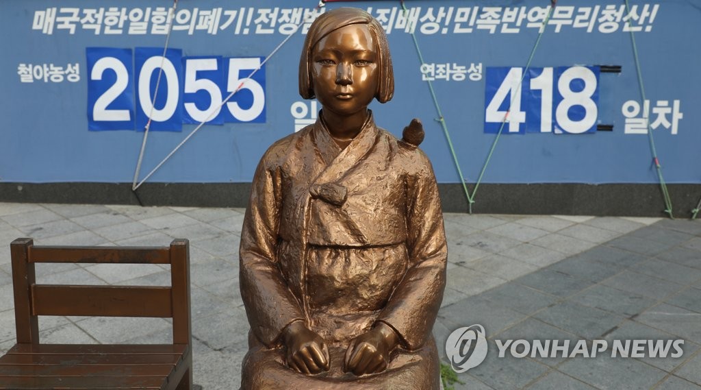 ▲ 평화의 소녀상 (서울=연합뉴스) 한상균 기자 = '일본군 위안부 피해자 기림의 날'인 2021년 8월 14일 종로구 옛 일본대사관 앞 평화의 소녀상 모습. '위안부 피해자 기림의 날'은 고(故) 김학순 할머니가 1991년 8월 14일 위안부 피해 사실을 처음 공개한 것을 기리기 위한 날이다.