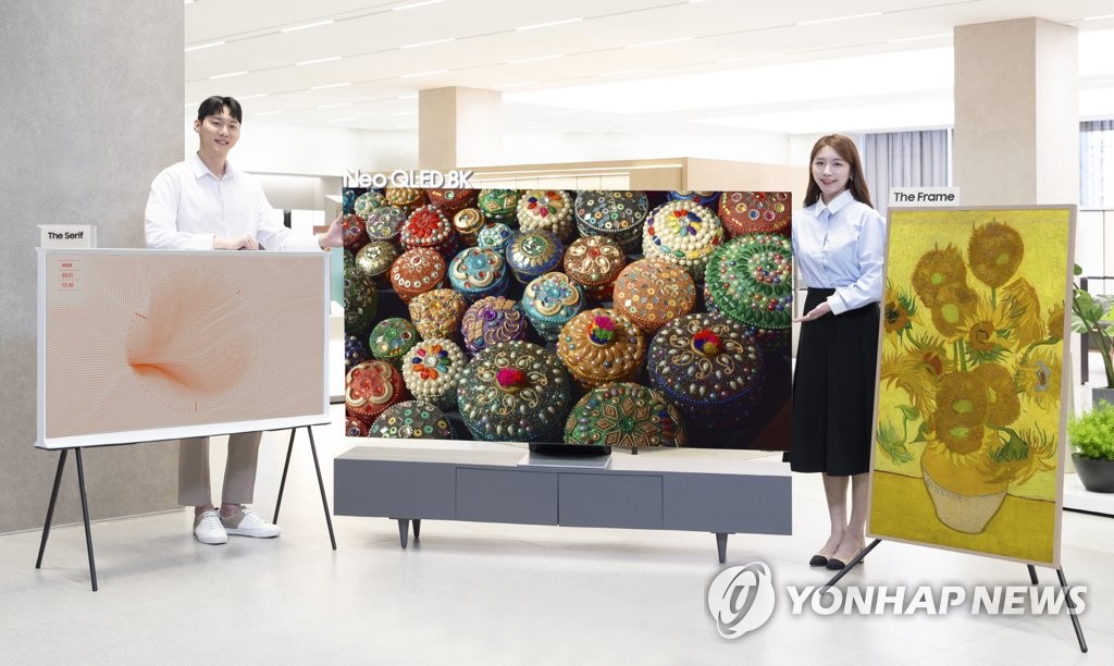 | ▲ 삼성전자, 2022년형 TV 전 라인업 국내 출시 (서울=연합뉴스) 삼성전자가 2022년형 TV 전 라인업을 22일 국내에 출시한다. 사진은 2022년형 더 세리프(왼쪽부터), 네오 QLED 8K(Neo QLED 8K), 더 프레임을 소개하는 삼성전자 모델. 2022.3.22 [삼성전자 제공. 재판매 및 DB 금지] photo@yna.co.kr |