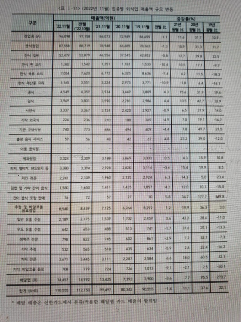 매출액 수치는 신한카드가 외식업 전체 규모를 추정해 제공한 카드 매출액 등을 분석한 나온 결과다.